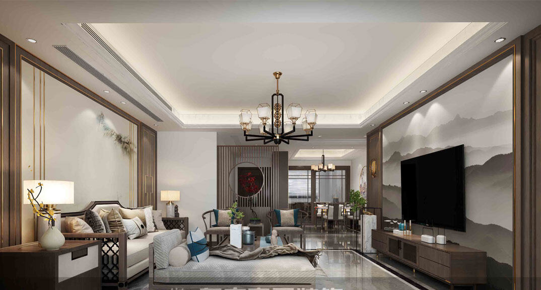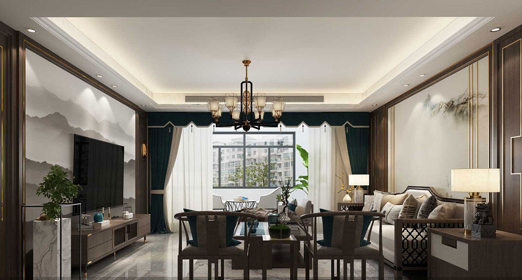 永麗花園158㎡三室兩廳客廳新中式風(fēng)格裝修案例效果圖