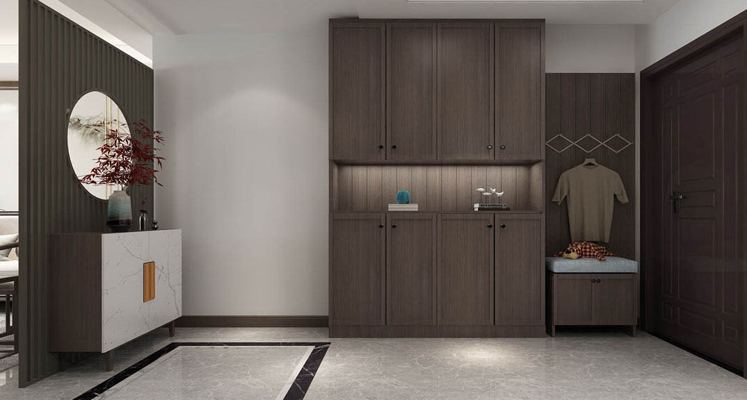 本案整體以現(xiàn)代中式風(fēng)格為主,既有現(xiàn)代風(fēng)格簡(jiǎn)約、明朗的線條,又有中國傳統(tǒng)內(nèi)涵與韻味。墻面大面積使用暖色烘托整體氛圍,融洽中式與現(xiàn)代簡(jiǎn)約兩種風(fēng)格??臻g更寬闊舒適玄關(guān)收納、玄關(guān)與干區(qū)相結(jié)合,既解放的外衛(wèi)的空間客廳電視背景是一面裝飾柜,豐富了空間,增加了收納和儲(chǔ)物,美觀又實(shí)用。