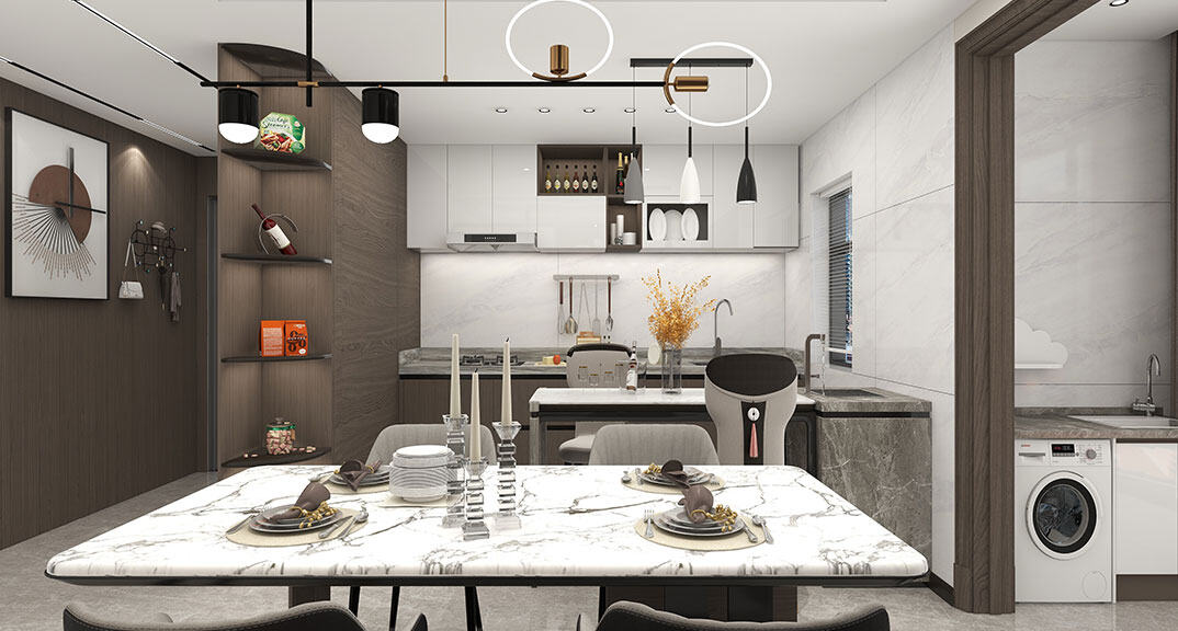 以簡潔、清晰和功能性為特征的室內(nèi)設(shè)計;它主要強調(diào)了空間的簡化和精煉,追求線條簡單、空間通透、色彩明亮、材質(zhì)自然等特點,注重形式與功能的結(jié)合。他們希望有一個時尚、現(xiàn)代的功能性空間,在整個空間的設(shè)計上用了暖灰調(diào)來與簡約的線條感來相呼應(yīng),能改造出一個通透、流暢的空間感。