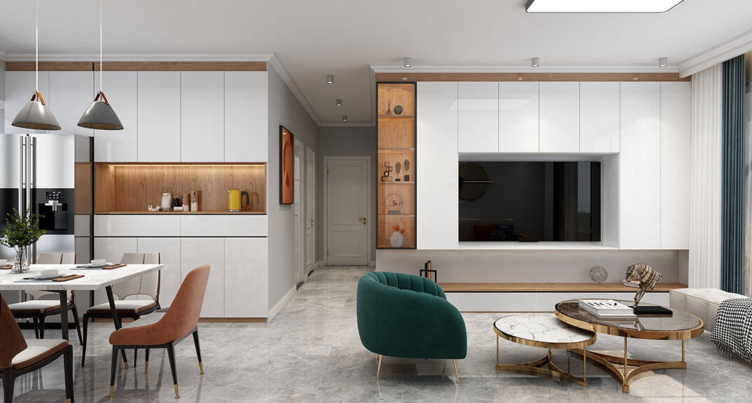 以簡潔、清晰和功能性為特征的室內(nèi)設(shè)計;它主要強(qiáng)調(diào)了空間的簡化和精煉,追求線條簡單、空間通透、色彩明亮、材質(zhì)自然等特點,注重形式與功能的結(jié)合。他們希望有一個時尚、現(xiàn)代的功能性空間,在整個空間的設(shè)計上用了暖灰調(diào)來與簡約的線條感來相呼應(yīng),能改造出一個通透、流暢的空間感。