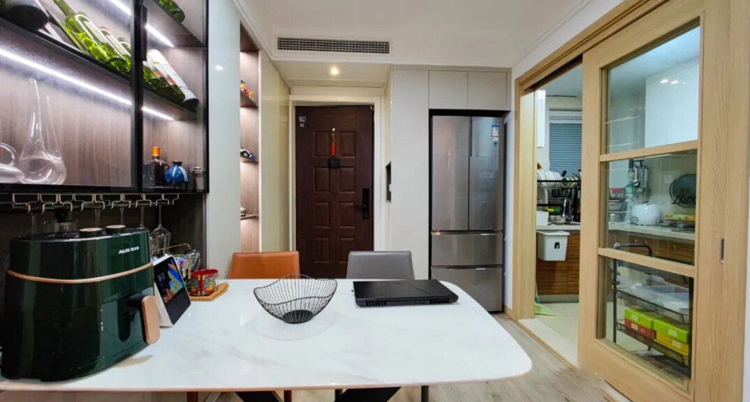 卓越皇后道90㎡三室兩廳餐廳廚房輕奢極簡風(fēng)格裝修實(shí)景效果圖