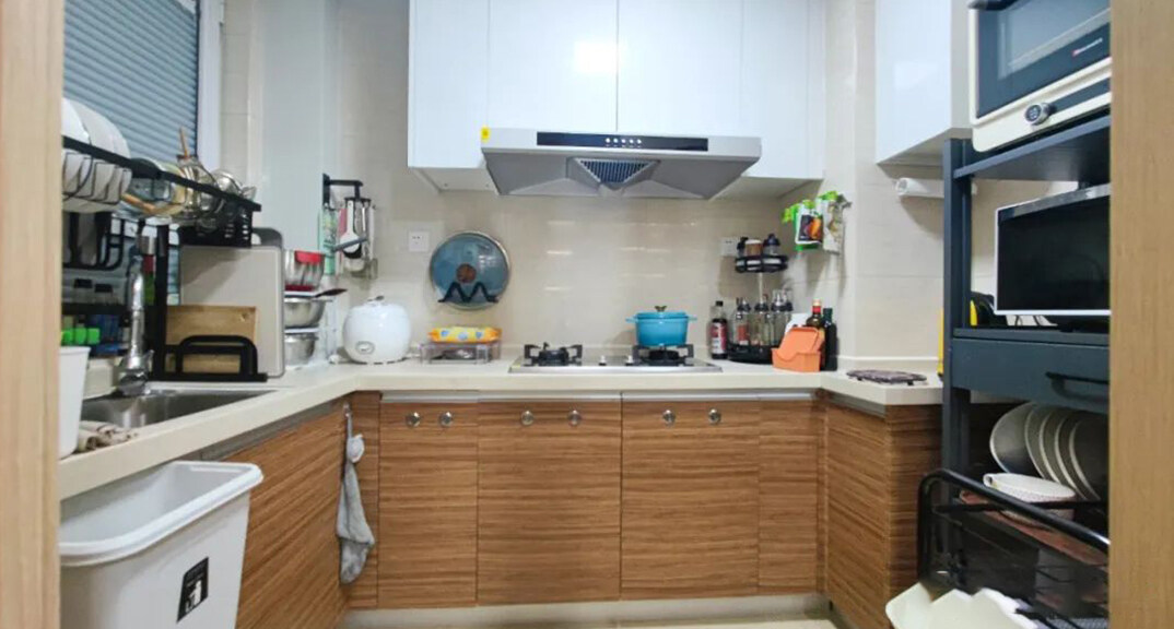 卓越皇后道90㎡三室兩廳廚房輕奢極簡風(fēng)格裝修實(shí)景效果圖