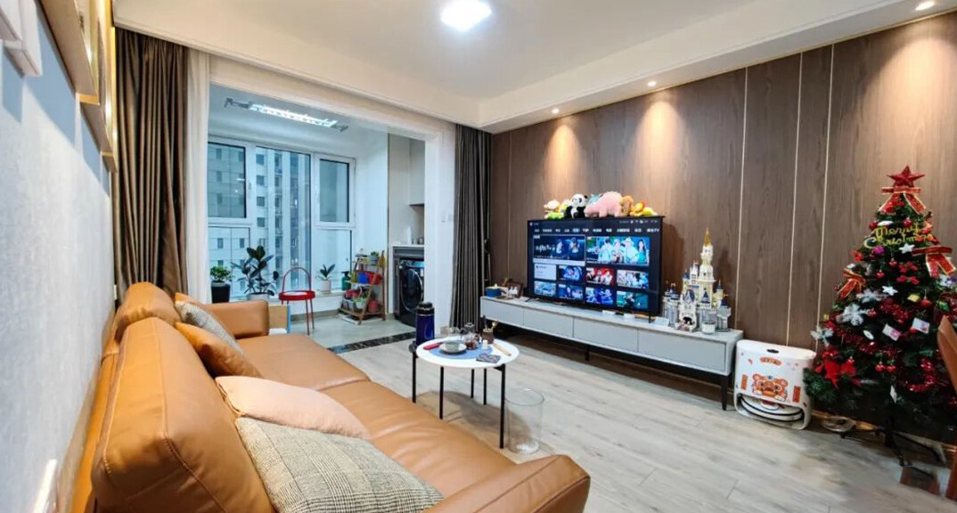 卓越皇后道90㎡三室兩廳客廳輕奢極簡風(fēng)格裝修實(shí)景效果圖
