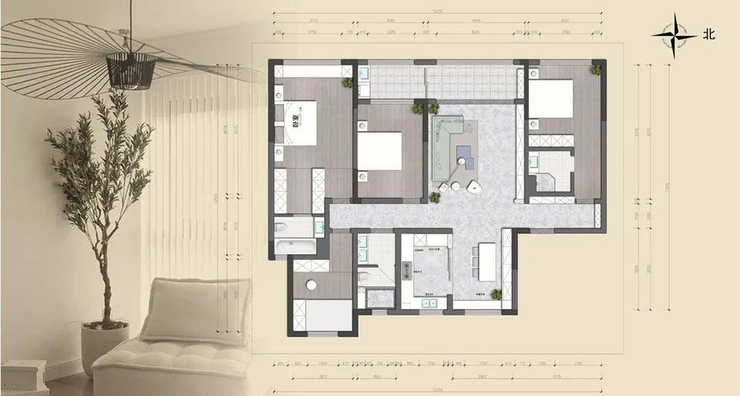 新城花園140㎡平層現(xiàn)代風(fēng)格裝修案例效果圖