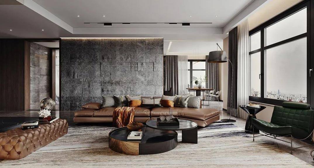 月?;▓@220㎡四室兩廳客廳沙發(fā)現(xiàn)代簡(jiǎn)約風(fēng)格裝修案例效果圖