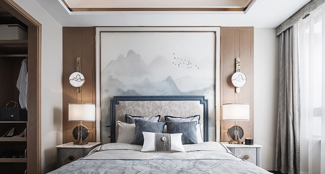 青特星城142㎡三室兩廳主臥新中式風(fēng)格裝修案例效果圖