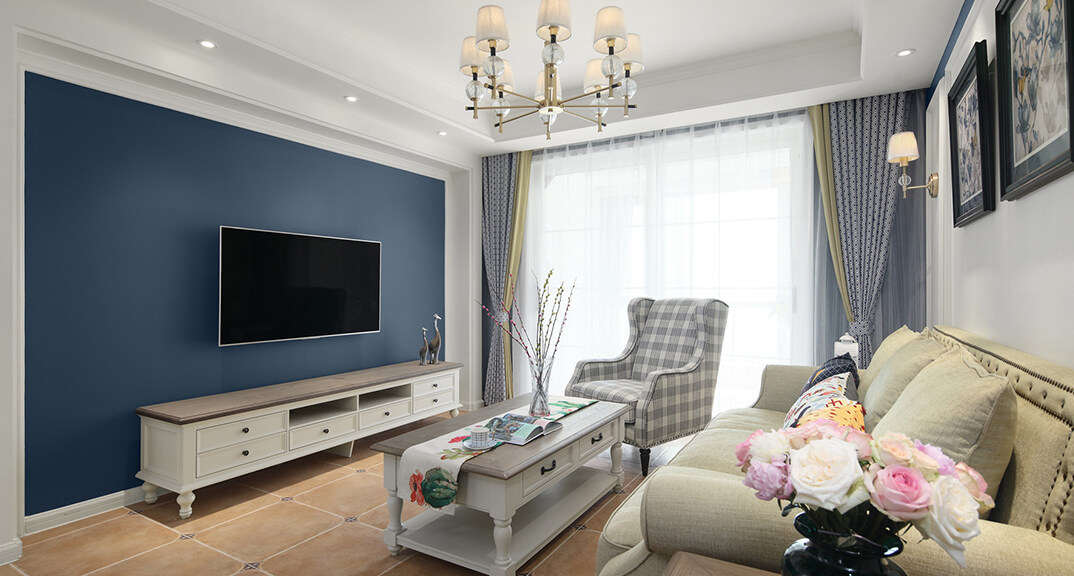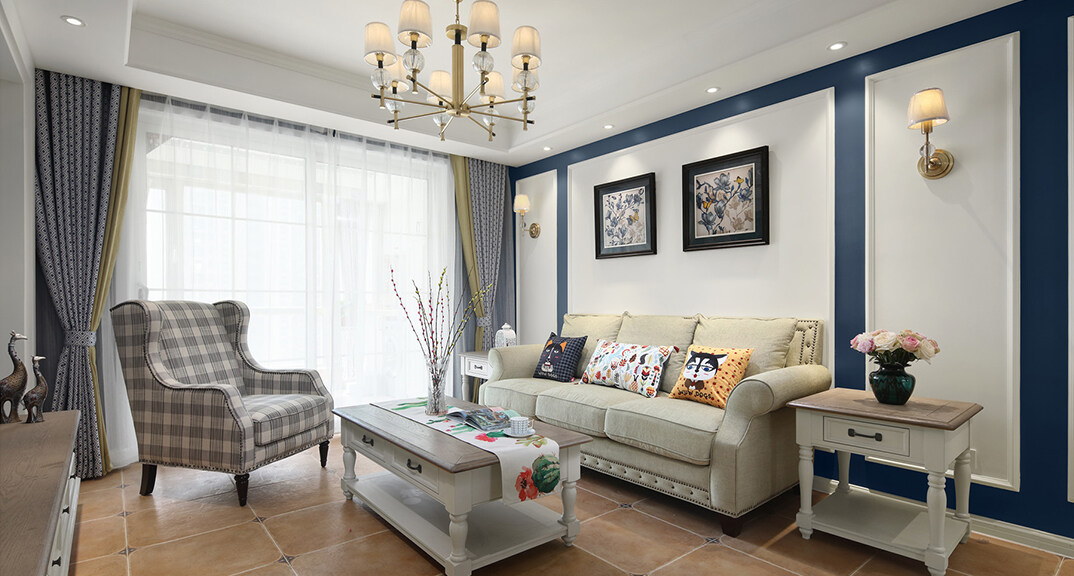 青特星城119㎡三室兩廳客廳美式風(fēng)格裝修案例效果圖