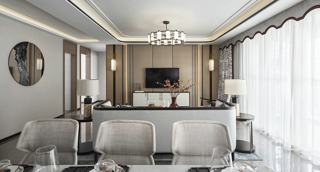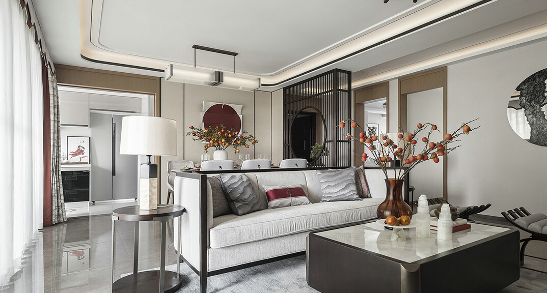 青特星城142㎡三室兩廳客餐廳新中式風(fēng)格裝修案例效果圖