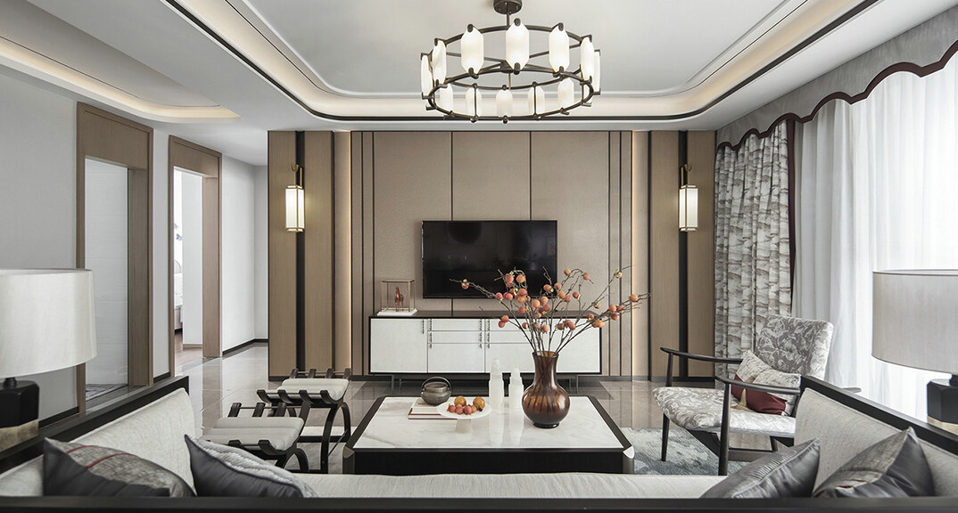 青特星城142㎡三室兩廳客廳新中式風(fēng)格裝修案例效果圖
