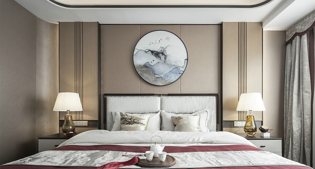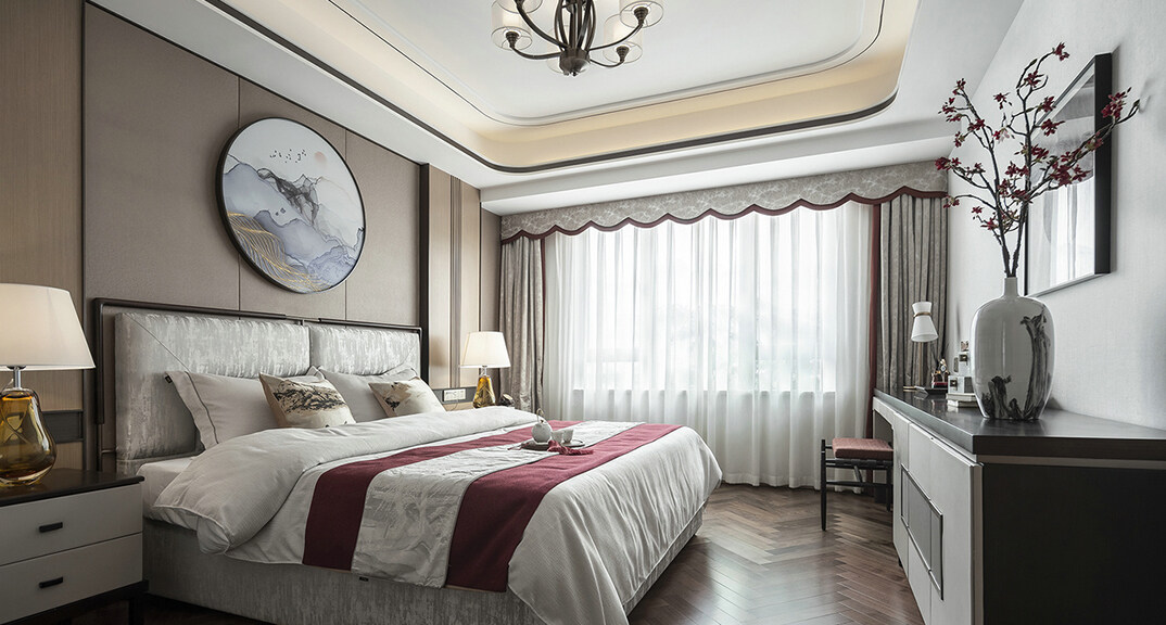 青特星城142㎡三室兩廳主臥新中式風(fēng)格裝修案例效果圖