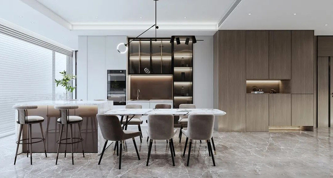 以簡潔、清晰和功能性為特征的室內設計;它主要強調了空間的簡化和精煉,追求線條簡單、空間通透、色彩明亮、材質自然等特點,注重形式與功能的結合。他們希望有一個時尚、現(xiàn)代的功能性空間,在整個空間的設計上用了暖灰調來與簡約的線條感來相呼應,能改造出一個通透、流暢的空間感。