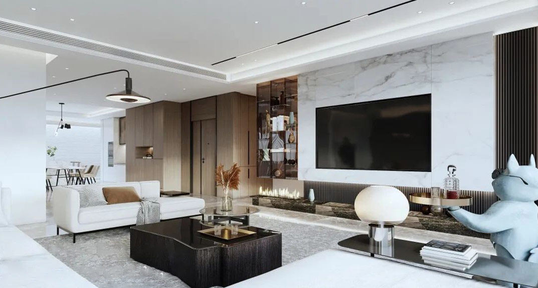 影都壹號127㎡三室兩廳意式輕奢風格裝修案例效果圖