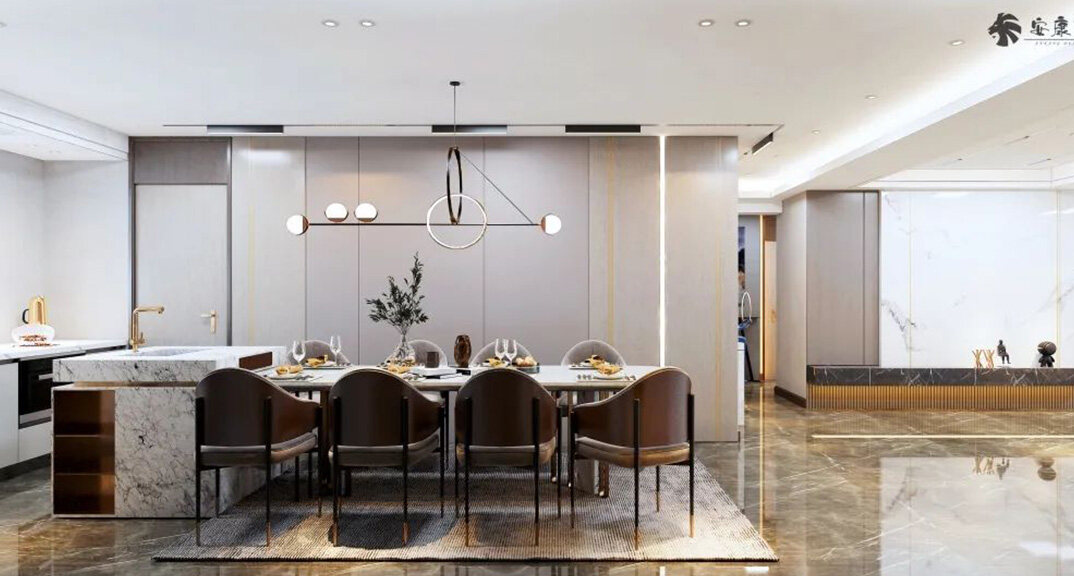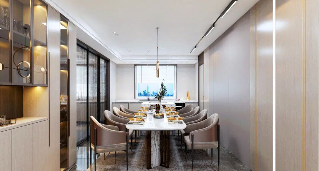 水岸風(fēng)景300㎡五室兩廳餐廳現(xiàn)代輕奢風(fēng)格裝修案例效果圖