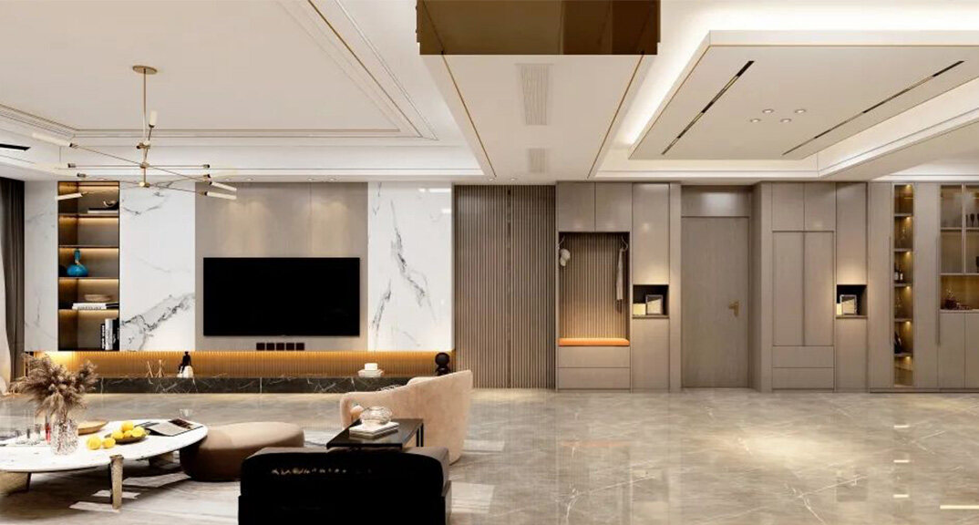 水岸風(fēng)景300㎡五室兩廳客廳電視現(xiàn)代輕奢風(fēng)格裝修案例效果圖
