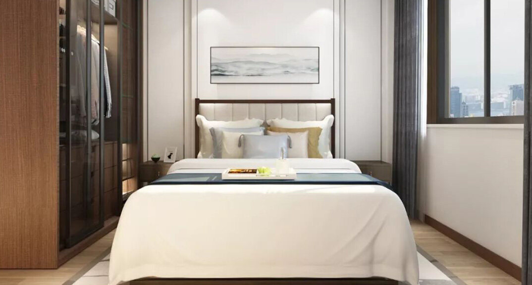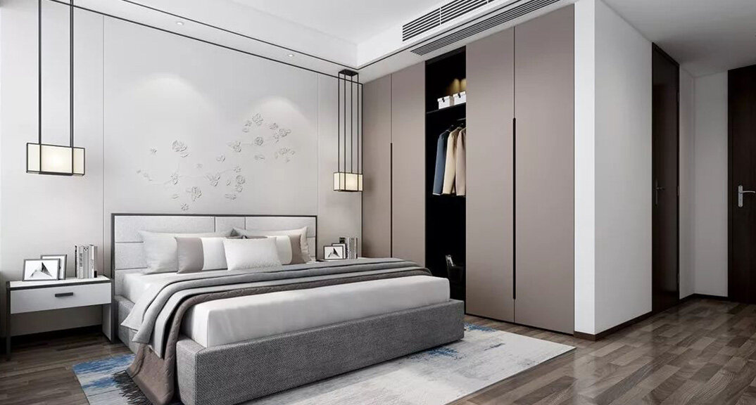 悅湖灣135㎡三室兩廳臥室新中式風(fēng)格裝修案例效果圖