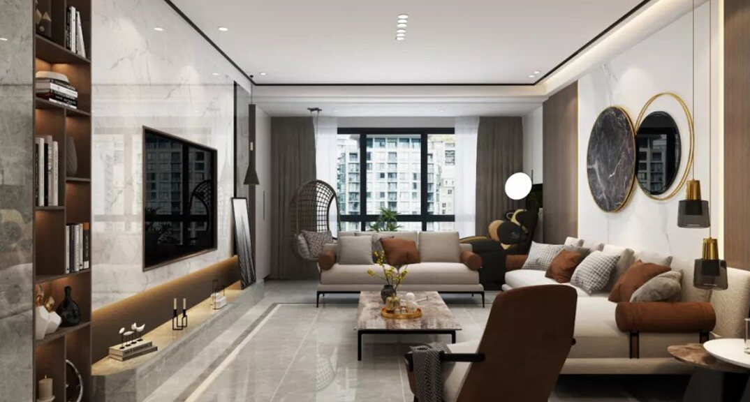 錦華御府169㎡三室兩廳客廳現(xiàn)代輕奢風格裝修案例效果圖