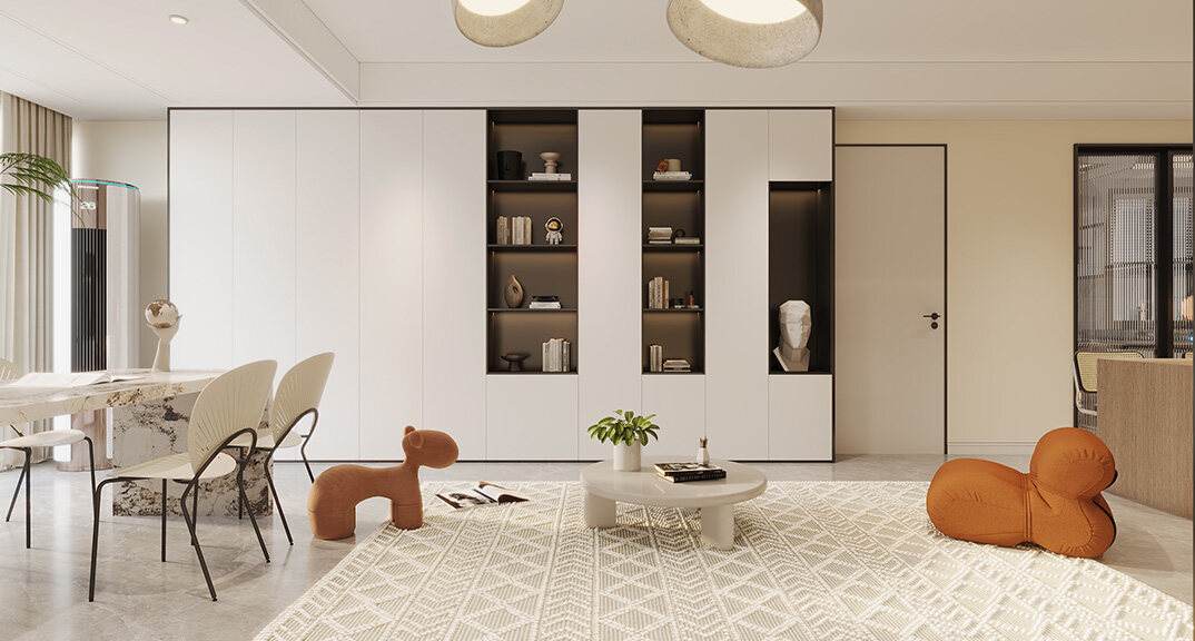 現(xiàn)代簡(jiǎn)約風(fēng)格強(qiáng)調(diào)少即是多,舍棄不必要的裝飾元素,追求時(shí)尚和現(xiàn)代的簡(jiǎn)潔造型、愉悅色彩。與傳統(tǒng)風(fēng)格相比,現(xiàn)代簡(jiǎn)約用最直白的裝飾語(yǔ)言體現(xiàn)空間和家具營(yíng)造的氛圍,進(jìn)而賦予空間個(gè)性和寧?kù)o。
