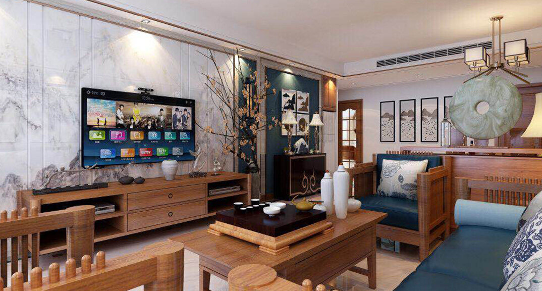 魯潤靜園156㎡三室兩廳客廳電視簡約中式風(fēng)格裝修案例效果圖