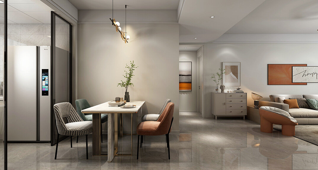 以簡潔、清晰和功能性為特征的室內(nèi)設(shè)計;它主要強(qiáng)調(diào)了空間的簡化和精煉,追求線條簡單、空間通透、色彩明亮、材質(zhì)自然等特點,注重形式與功能的結(jié)合。他們希望有一個時尚、現(xiàn)代的功能性空間,在整個空間的設(shè)計上用了暖灰調(diào)來與簡約的線條感來相呼應(yīng),能改造出一個通透、流暢的空間感。