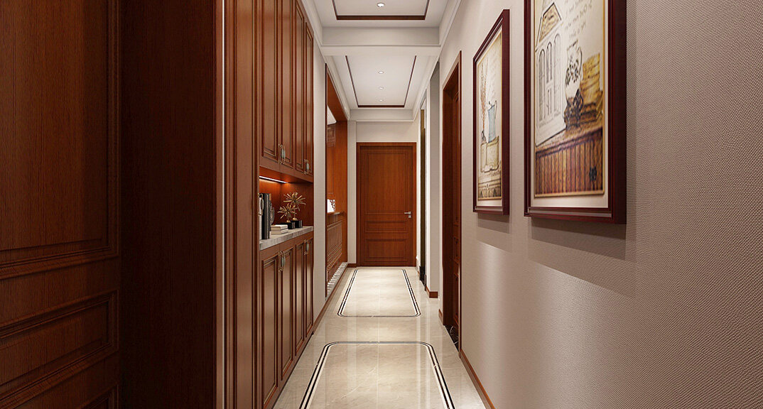 嶗山官邸1000㎡別墅二樓走廊新中式風(fēng)格裝修案例效果圖