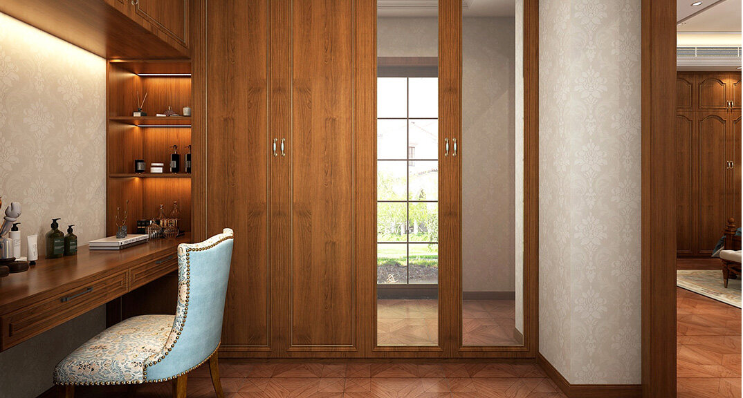 嶗山官邸1000㎡別墅二樓衣帽間新中式風(fēng)格裝修案例效果圖