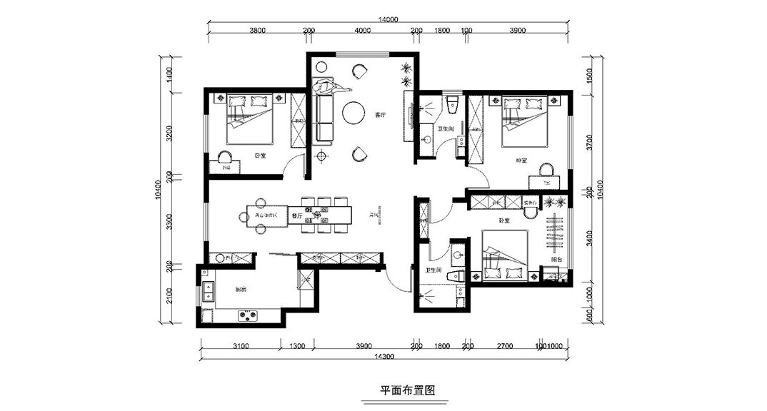 金地悅峰185㎡三室兩廳戶型平面布局圖