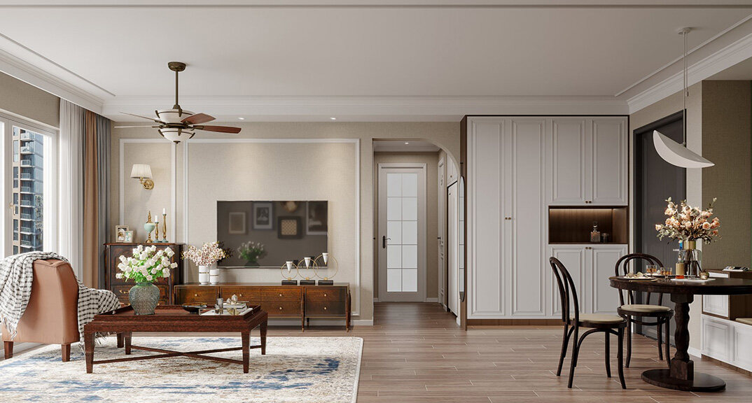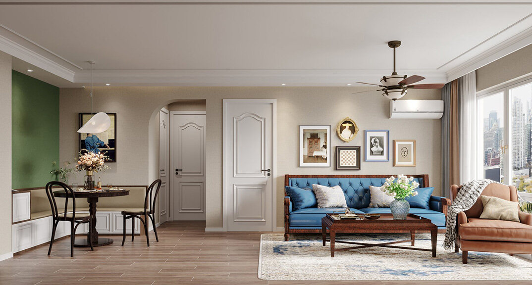 海洋地質(zhì)所120㎡三室兩廳美式風(fēng)格裝修vr全景效果