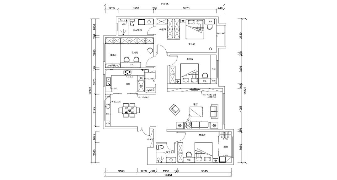 錦繡花園240㎡四室兩廳戶型平面布局圖