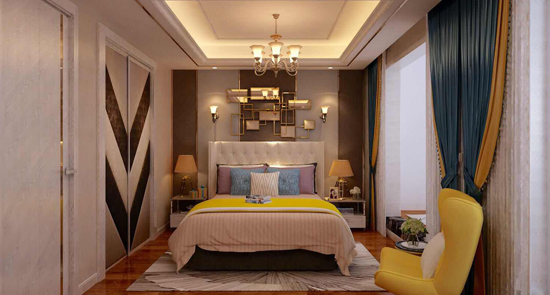 金秋泰和郡186㎡別墅臥室現(xiàn)代歐式風格裝修案例效果圖