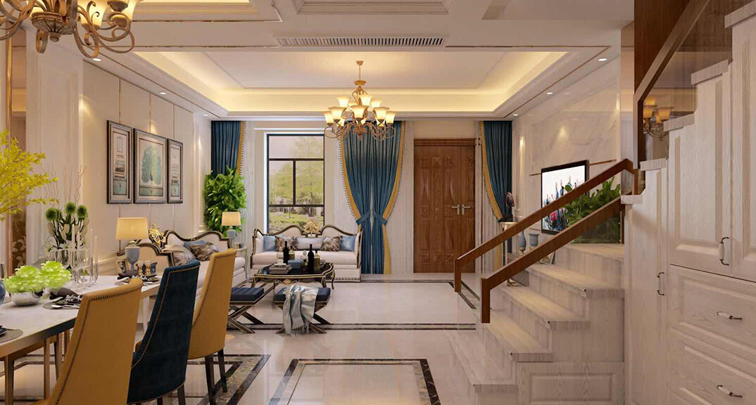 金秋泰和郡186㎡別墅客廳沙發(fā)現(xiàn)代歐式風格裝修案例效果圖