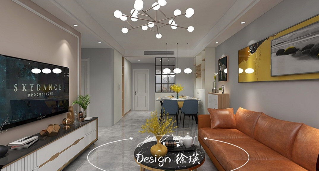 本案為現(xiàn)代風(fēng)格。用墻板和燈帶使空間更具氛圍??筒蛷d區(qū)域多采用墻板及原木色家具增加儲物空間。地面做通鋪的地磚,使空間顯得更通透明亮體現(xiàn)了空間的延展性。
