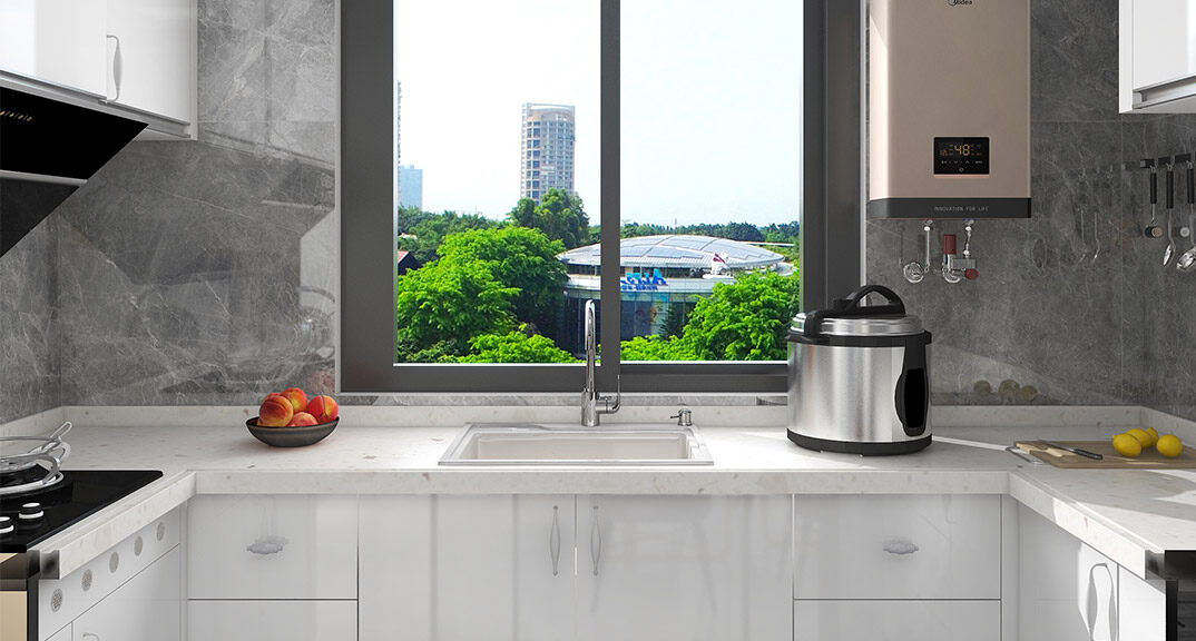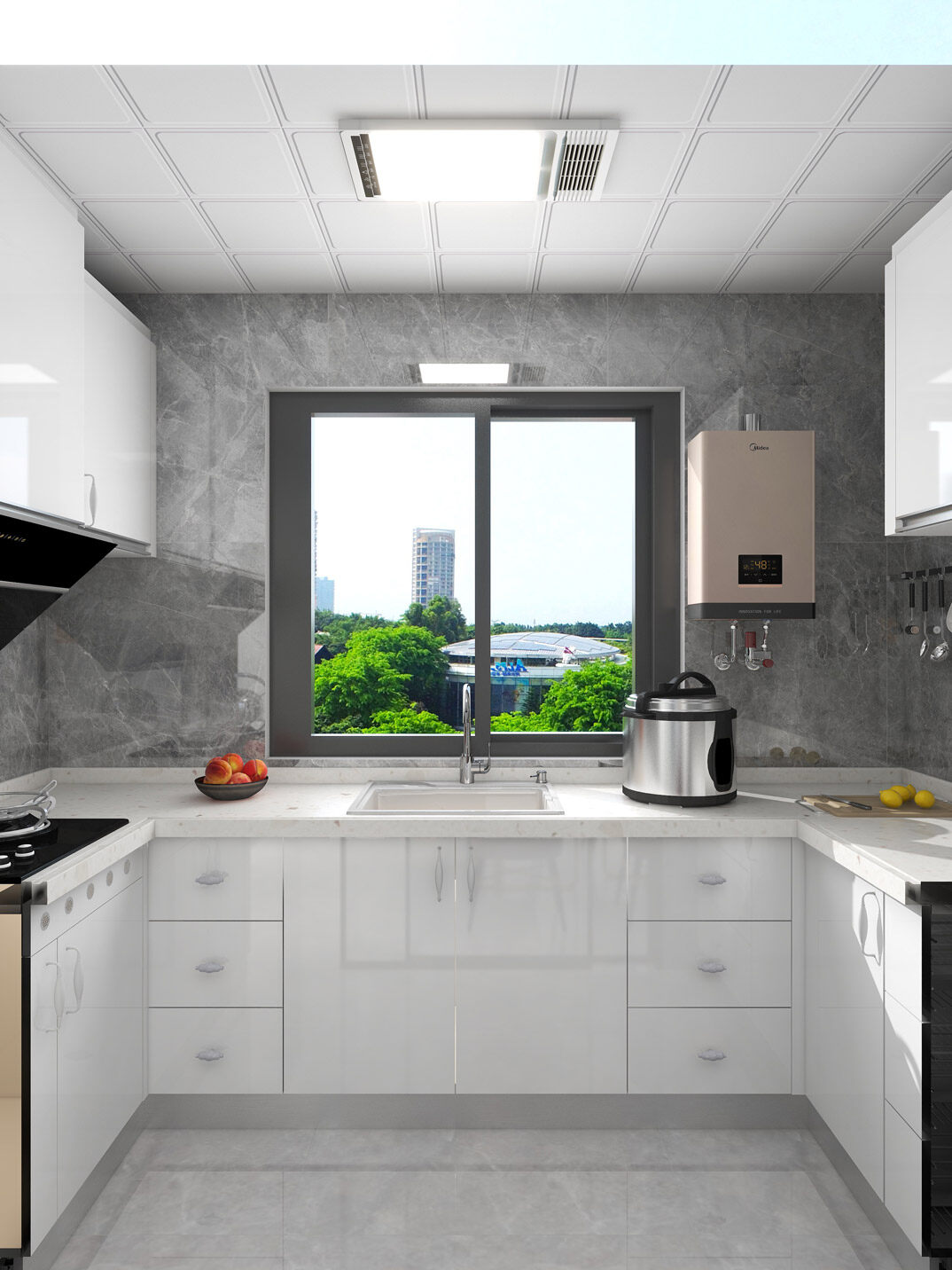保利時代97㎡三室一廳廚房現(xiàn)代風格裝修案例效果圖