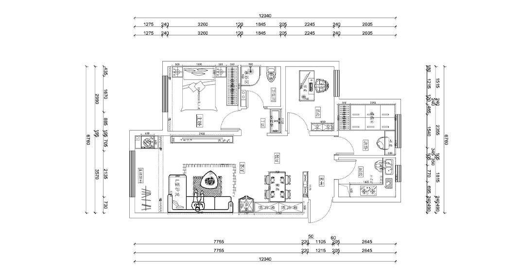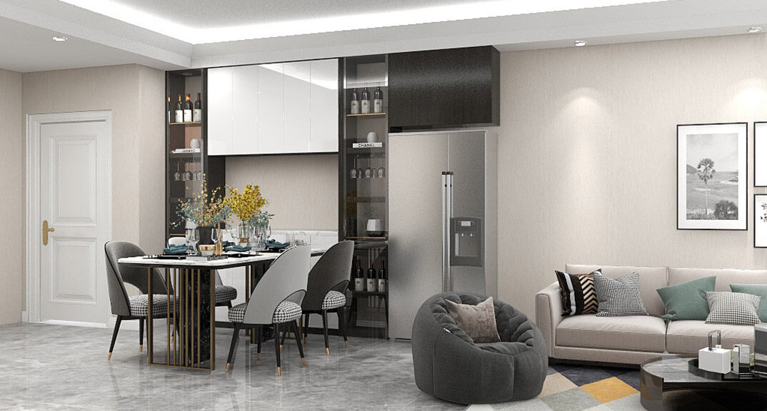 保利時代97㎡三室一廳客餐廳現(xiàn)代風格裝修案例效果圖