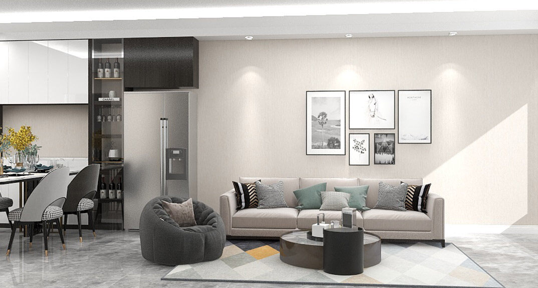 保利時代97㎡三室一廳客廳現(xiàn)代風格裝修案例效果圖