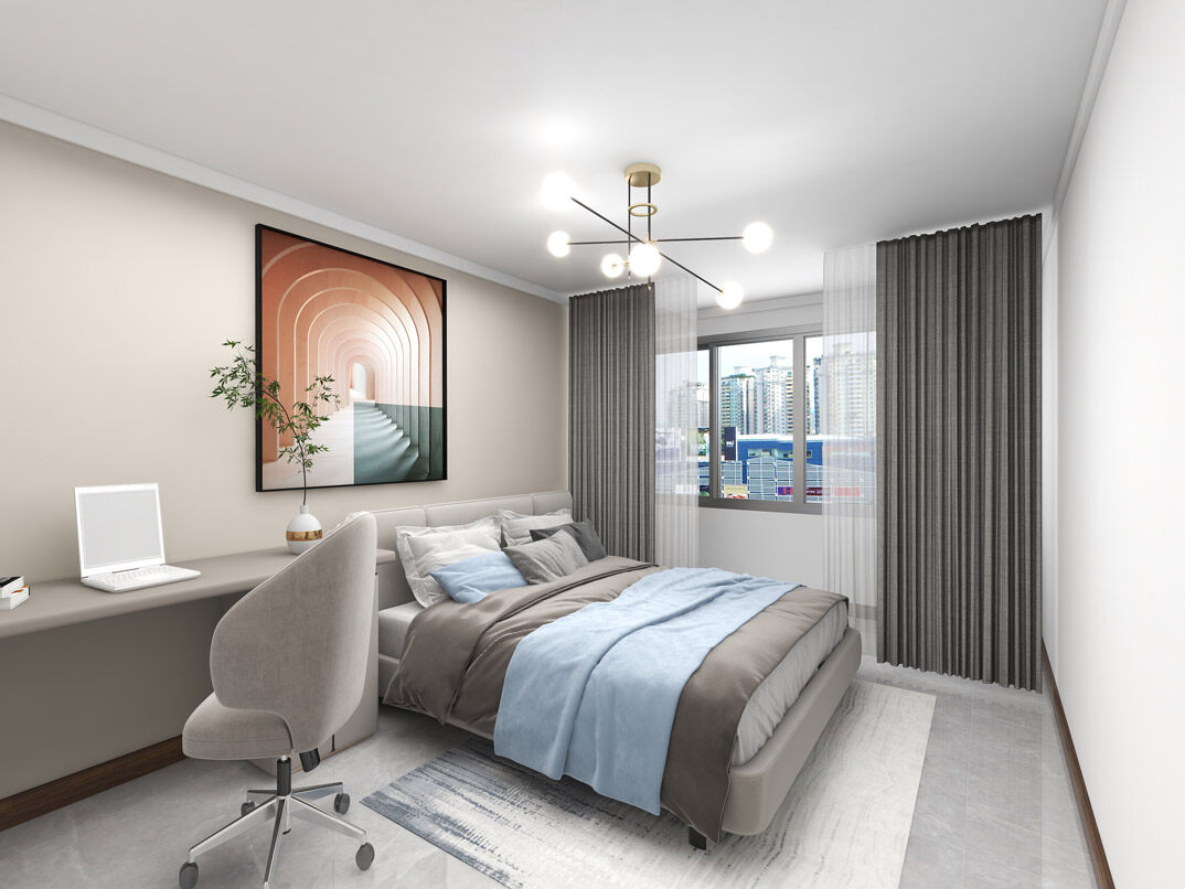 保利時代97㎡三室一廳次臥現(xiàn)代風格裝修案例效果圖