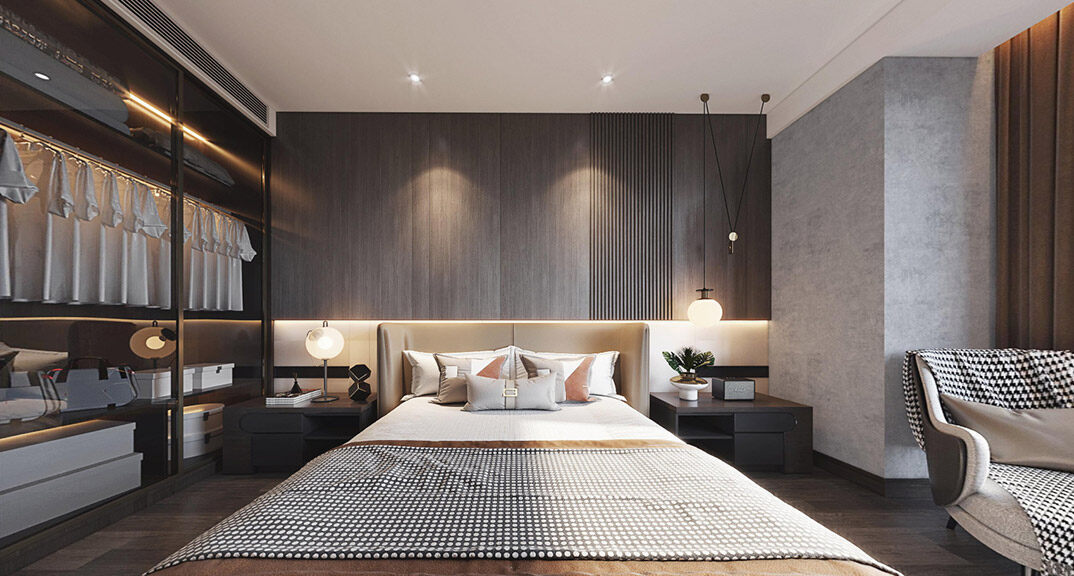 本案設(shè)計(jì)風(fēng)格為意式輕奢,拒絕了濃烈的色彩,以一種簡單、純粹的設(shè)計(jì)語言,回歸生活的本質(zhì),留存給居住者更多生活想象的空間。 整體空間灰橙色、駝色、與淺暖灰色調(diào)展現(xiàn)輕奢低調(diào)的高級質(zhì)感,簡約時(shí)尚的家具又增添了一份現(xiàn)代感,重新梳理了空間功能和尺寸,客廳陽臺(tái)一體化設(shè)計(jì),最大限度引入自然光,高級灰搭配中性色系木飾面,打造一個(gè)舒適的高品質(zhì)空間。在空間設(shè)計(jì)與色彩配搭上,精準(zhǔn)地把控節(jié)奏,用設(shè)計(jì)表達(dá)空間的包容性,更多的是通過人性化思考,創(chuàng)造一個(gè)功能性完整的舒適生活空間。大塊的木飾面、金屬元素和燈 光的碰撞搭配,凸顯出強(qiáng)大張力,共同打造出意式輕奢腔調(diào)十足的時(shí)尚與質(zhì)感。