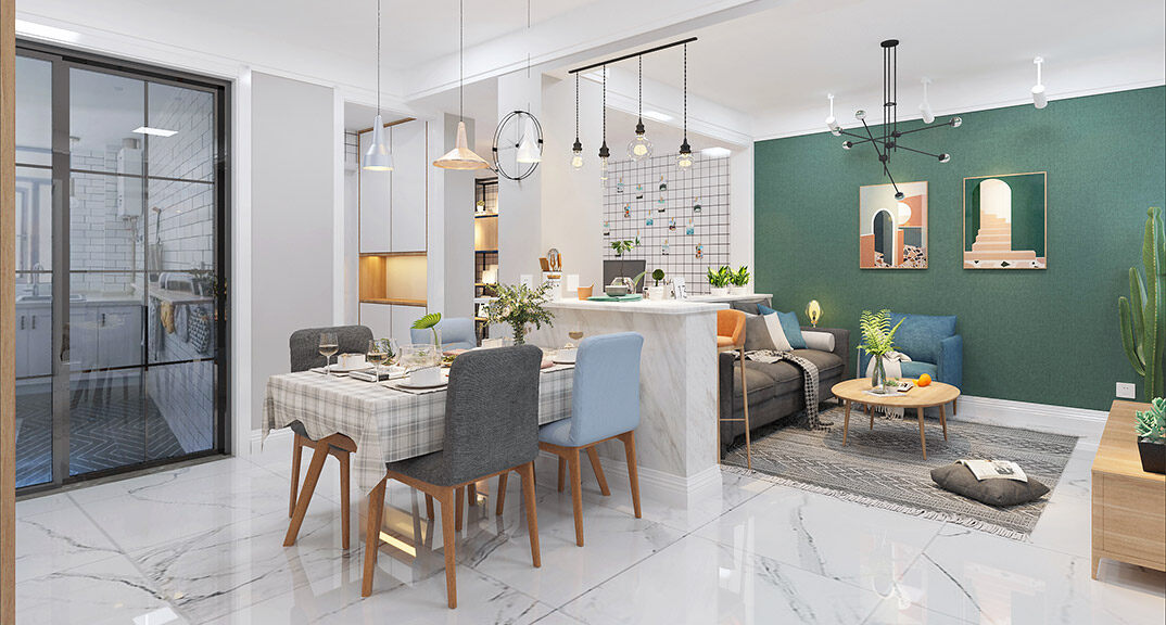 萊頓小鎮(zhèn)·瀾海郡125㎡三室兩廳餐廳北歐風(fēng)格裝修案例效果圖