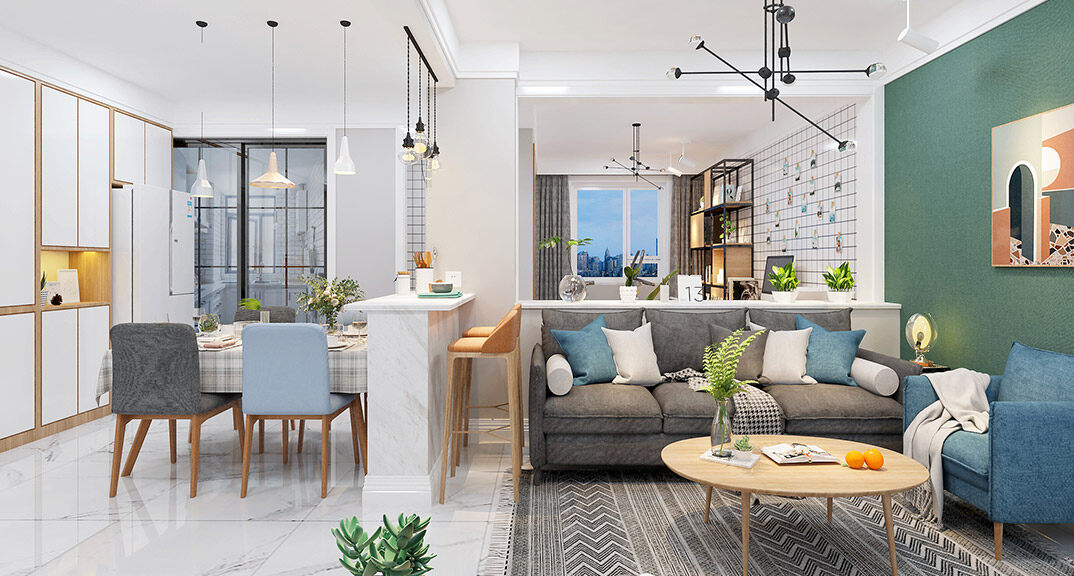 萊頓小鎮(zhèn)·瀾???25㎡三室兩廳客餐廳北歐風(fēng)格裝修案例效果圖