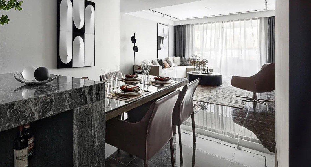 以簡潔、清晰和功能性為特征的室內(nèi)設(shè)計(jì);它主要強(qiáng)調(diào)了空間的簡化和精煉,追求線條簡單、空間通透、色彩明亮、材質(zhì)自然等特點(diǎn),注重形式與功能的結(jié)合。他們希望有一個(gè)時(shí)尚、現(xiàn)代的功能性空間,在整個(gè)空間的設(shè)計(jì)上用了暖灰調(diào)來與簡約的線條感來相呼應(yīng),能改造出一個(gè)通透、流暢的空間感。