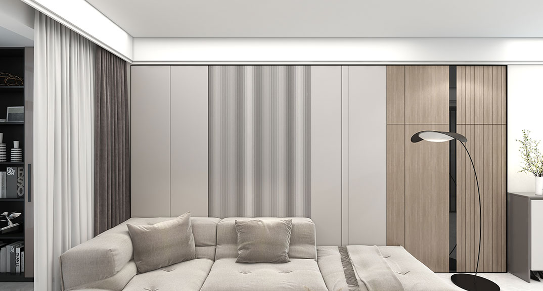 簡約利落的材質(zhì)鋪敘與敞明大方的格局尺度,是輕奢風(fēng)格定調(diào)的設(shè)計(jì)中不可或缺的重要元素。以陳設(shè)藝術(shù)品及石材金屬線條材質(zhì)來營造大氣、自然、輕奢的裝飾美學(xué)氛圍。家具陳設(shè)均以簡潔的造型、精細(xì)的工藝為其特征,強(qiáng)調(diào)品質(zhì)感,細(xì)節(jié)處的飾品擺設(shè)也增添了居家空間的細(xì)膩與雅致氣息。