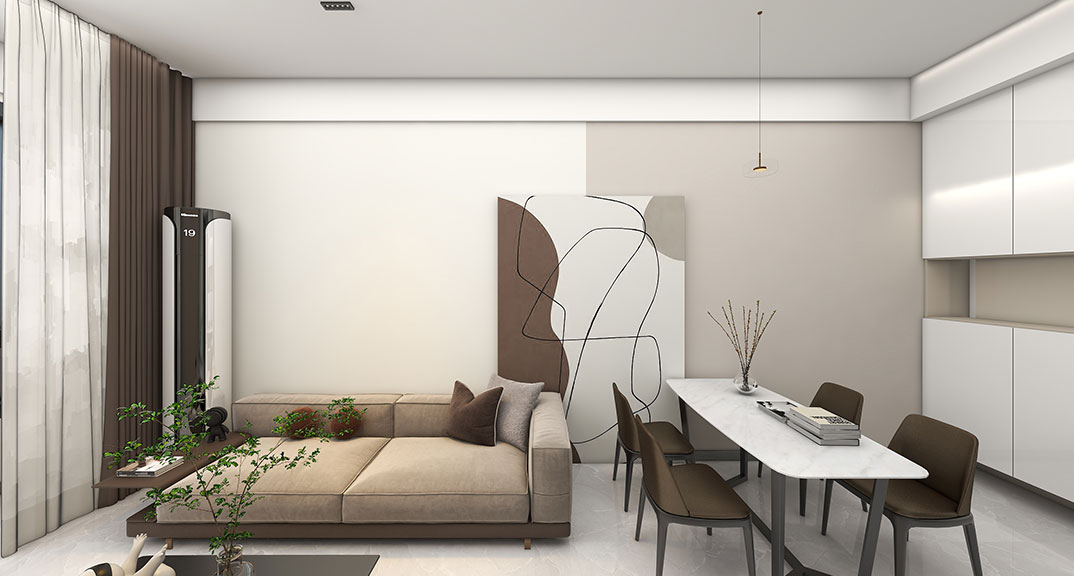 以簡(jiǎn)潔、清晰和功能性為特征的室內(nèi)設(shè)計(jì);它主要強(qiáng)調(diào)了空間的簡(jiǎn)化和精煉,追求線條簡(jiǎn)單、空間通透、色彩明亮、材質(zhì)自然等特點(diǎn),注重形式與功能的結(jié)合。他們希望有一個(gè)時(shí)尚、現(xiàn)代的功能性空間,在整個(gè)空間的設(shè)計(jì)上用了暖灰調(diào)來(lái)與簡(jiǎn)約的線條感來(lái)相呼應(yīng),能改造出一個(gè)通透、流暢的空間感。