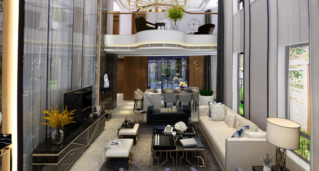 名悅山莊700㎡獨棟別墅港式風(fēng)格裝修案例效果圖