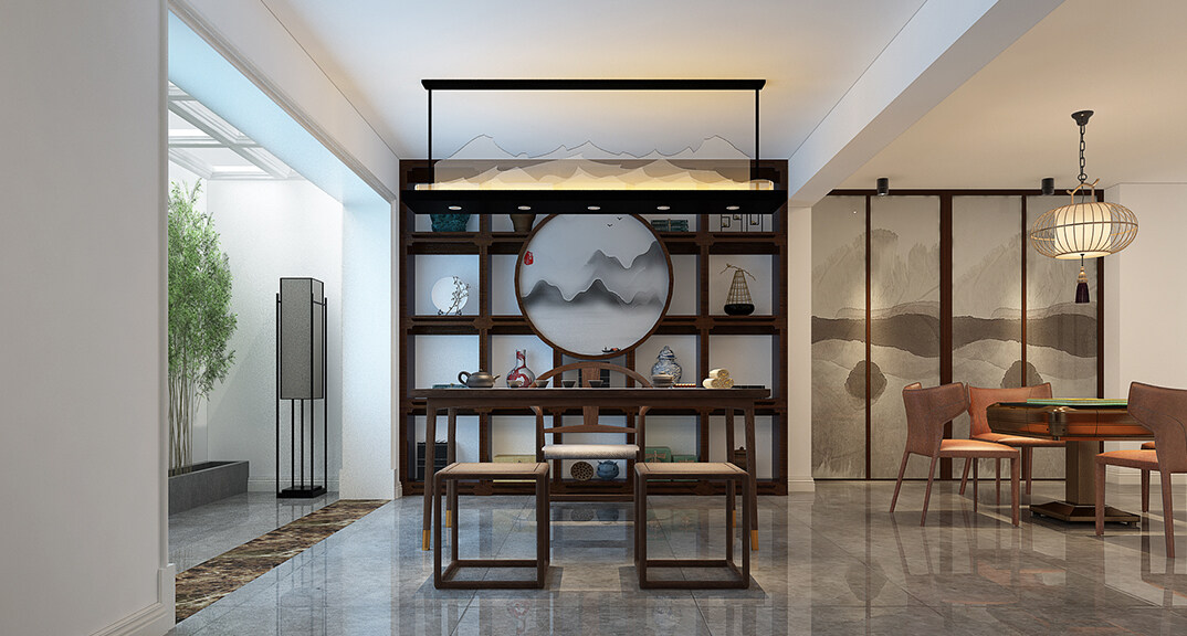 楓林小鎮(zhèn)160㎡聯(lián)排別墅新中式風格裝修案例效果圖