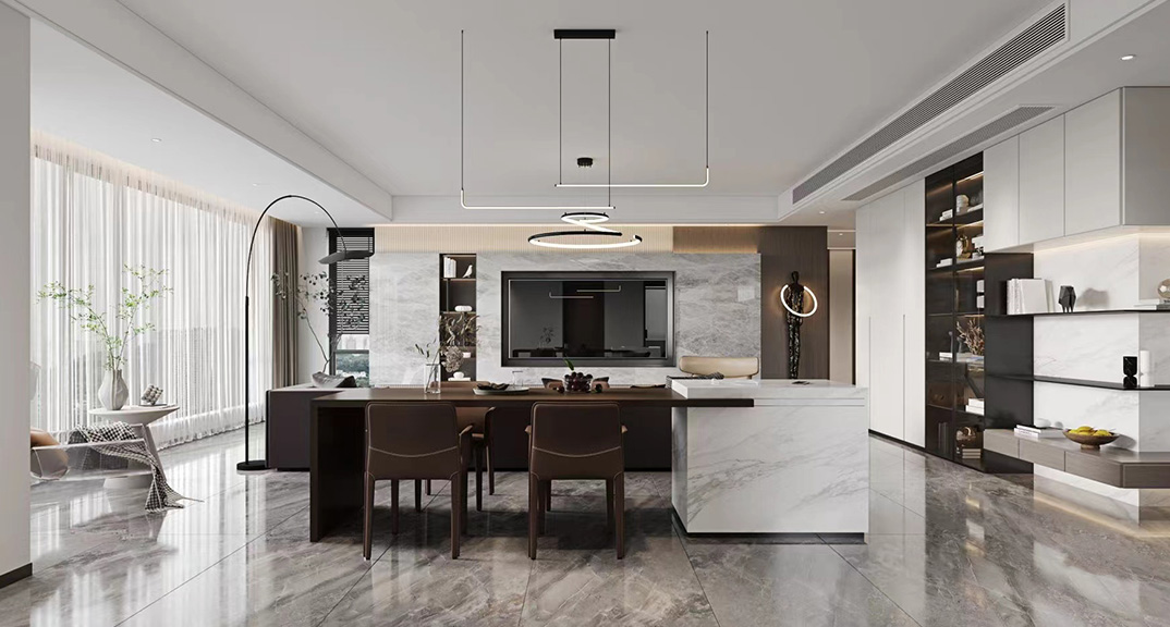 以簡潔、清晰和功能性為特征的室內(nèi)設(shè)計;它主要強調(diào)了空間的簡化和精煉,追求線條簡單、空間通透、色彩明亮、材質(zhì)自然等特點,注重形式與功能的結(jié)合。他們希望有一個時尚、現(xiàn)代的功能性空間,在整個空間的設(shè)計上用了暖灰調(diào)來與簡約的線條感來相呼應(yīng),能改造出一個通透、流暢的空間感。