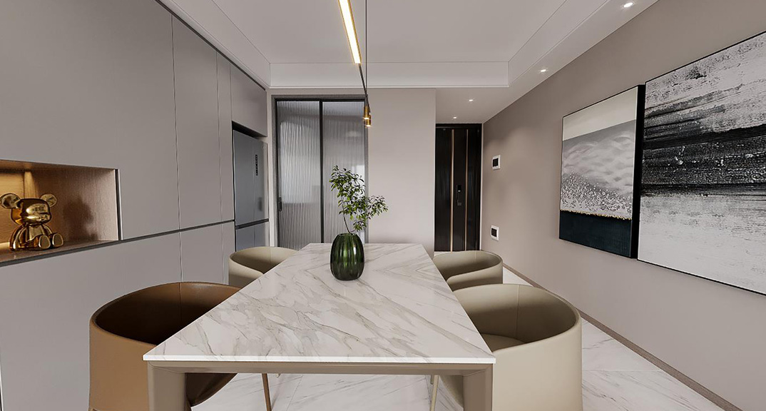 以簡(jiǎn)潔、清晰和功能性為特征的室內(nèi)設(shè)計(jì);它主要強(qiáng)調(diào)了空間的簡(jiǎn)化和精煉,追求線條簡(jiǎn)單、空間通透、色彩明亮、材質(zhì)自然等特點(diǎn),注重形式與功能的結(jié)合。他們希望有一個(gè)時(shí)尚、現(xiàn)代的功能性空間,在整個(gè)空間的設(shè)計(jì)上用了暖灰調(diào)來與簡(jiǎn)約的線條感來相呼應(yīng),能改造出一個(gè)通透、流暢的空間感。