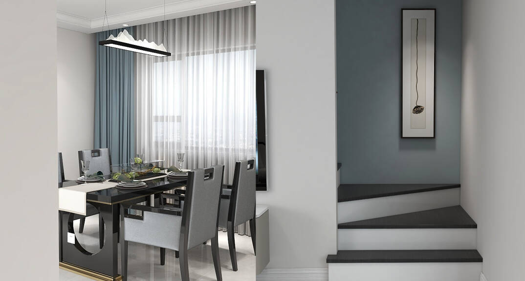 中歐國際城金茂墅220㎡別墅上疊餐廳新中式風(fēng)格裝修案例效果圖