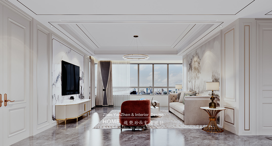 璞麗豪庭287㎡疊拼上疊客廳美式輕奢風格裝修案例效果圖1.jpg