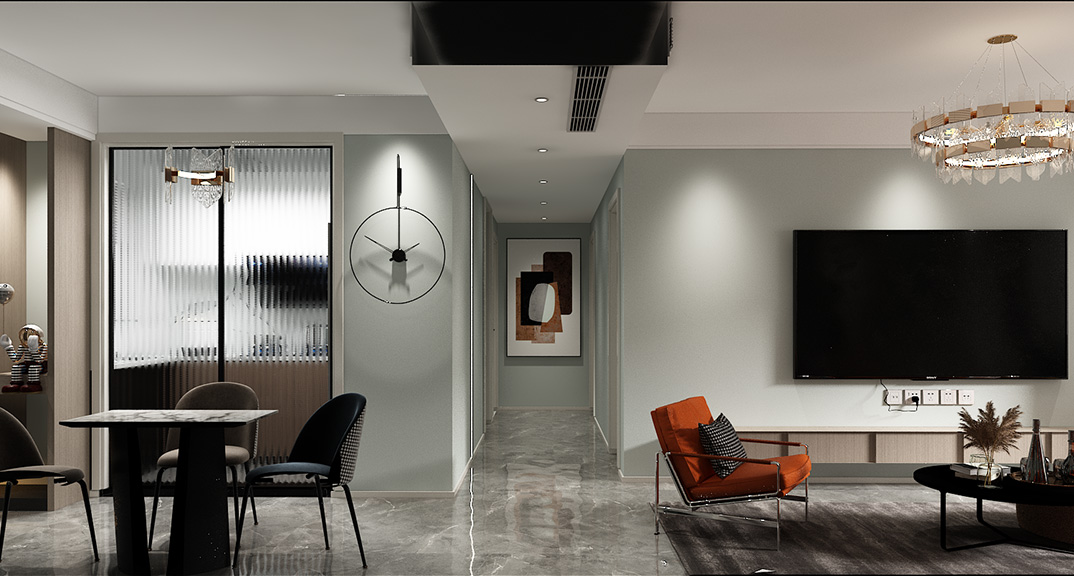 以簡潔、清晰和功能性為特征的室內(nèi)設(shè)計;它主要強(qiáng)調(diào)了空間的簡化和精煉,追求線條簡單、空間通透、色彩明亮、材質(zhì)自然等特點(diǎn),注重形式與功能的結(jié)合。他們希望有一個時尚、現(xiàn)代的功能性空間,在整個空間的設(shè)計上用了暖灰調(diào)來與簡約的線條感來相呼應(yīng),能改造出一個通透、流暢的空間感。