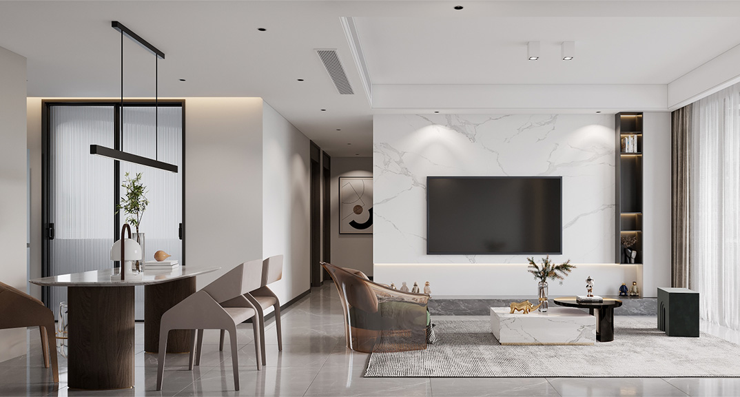 春城世家111㎡三室兩廳客餐廳電視現(xiàn)代風格裝修案例效果圖