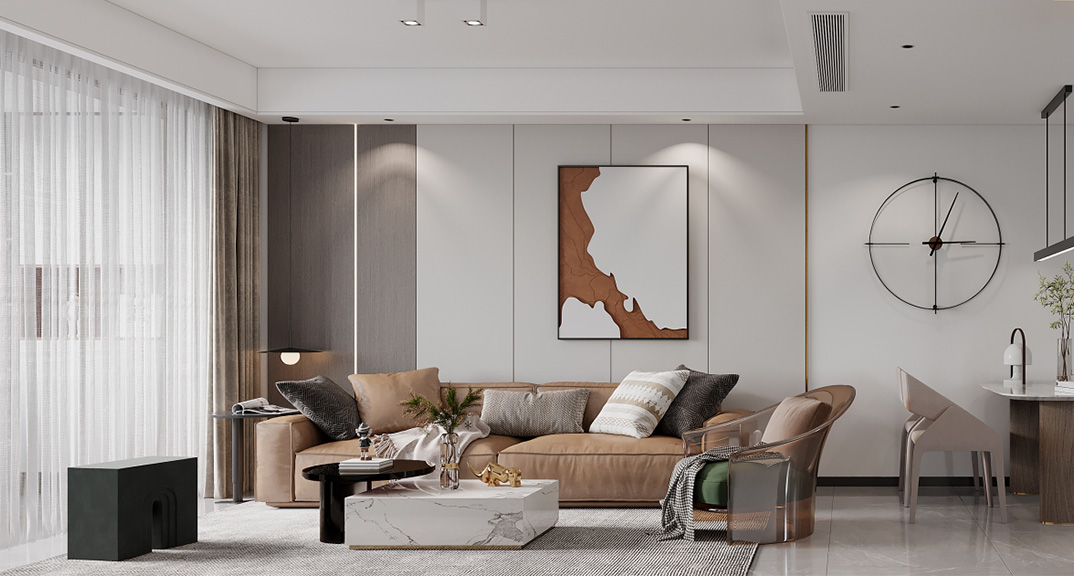 春城世家111㎡三室兩廳客餐廳沙發(fā)現(xiàn)代風格裝修案例效果圖